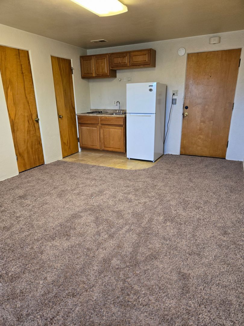Studio living in downtown Helena. Brand new carpet. Kitchen features cook-top, sink and fridge. Bathroom has a stand up shower. Water, sewer and garbage are included. No smoking. This is not a pet friendly building except for qualified service and support animals.